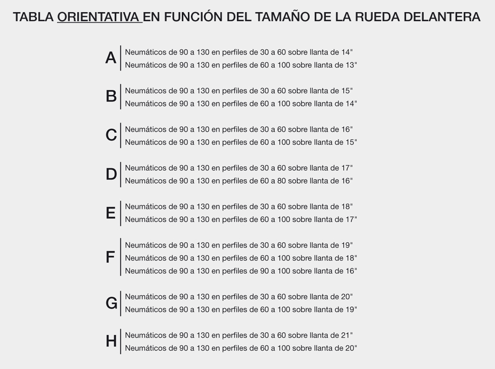AJUSTE DEL BASCULANTE EN FUNCIÓN DEL TAMAÑO DE LA RUEDA DELANTERA |