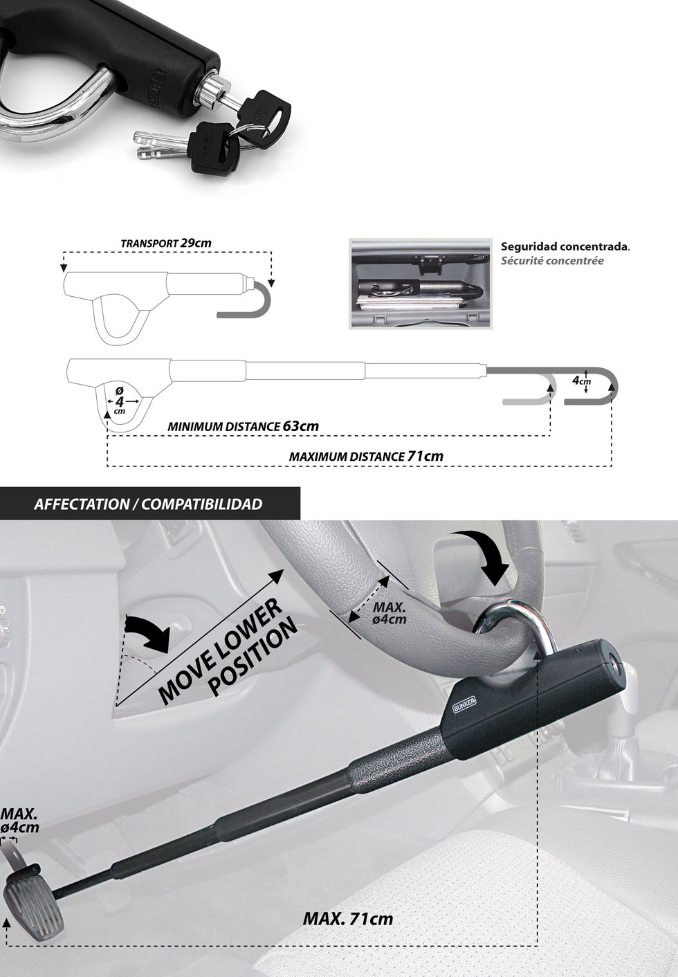 Cerradura anti-ganzúa con disco anti-taladro.